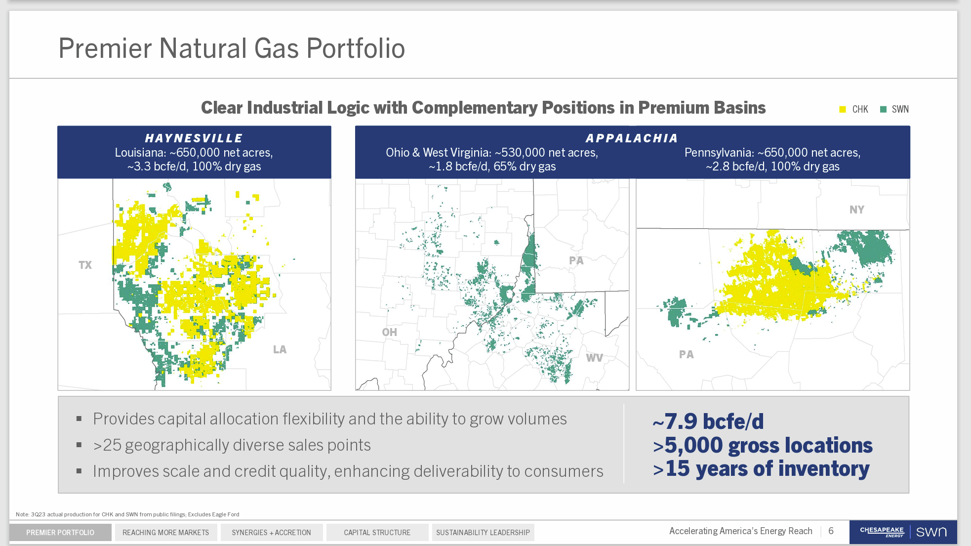 The combined company will have operations in both the Marcellus and the Haynesville dry gas areas. Management is transitioning to a dry gas producer at a time when many in the industry are picking up rich natural gas production to "help out" during times like right now when natural gas prices are low.
