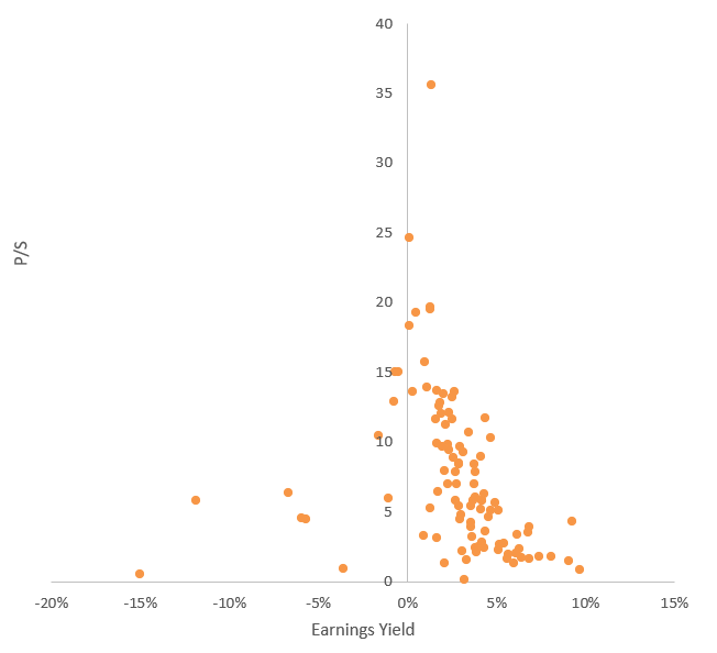 | Stock | Weight in SCHG | Sector | EY | P/S |