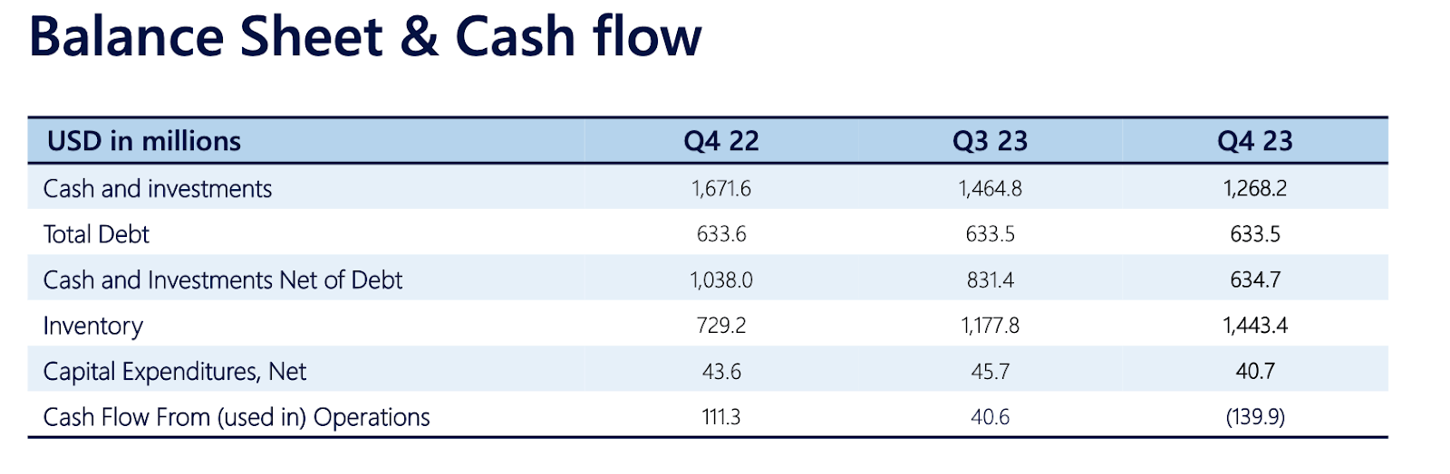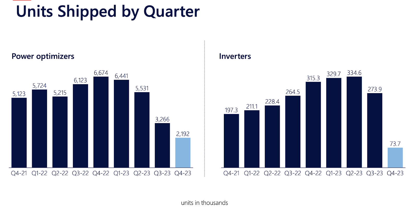SEDG ended the quarter with $1.3 billion and $635 million in net cash, down from $831 million in the third quarter. Meanwhile, inventories grew sequentially to $1.4 billion. Business is clearly not operating as usual.