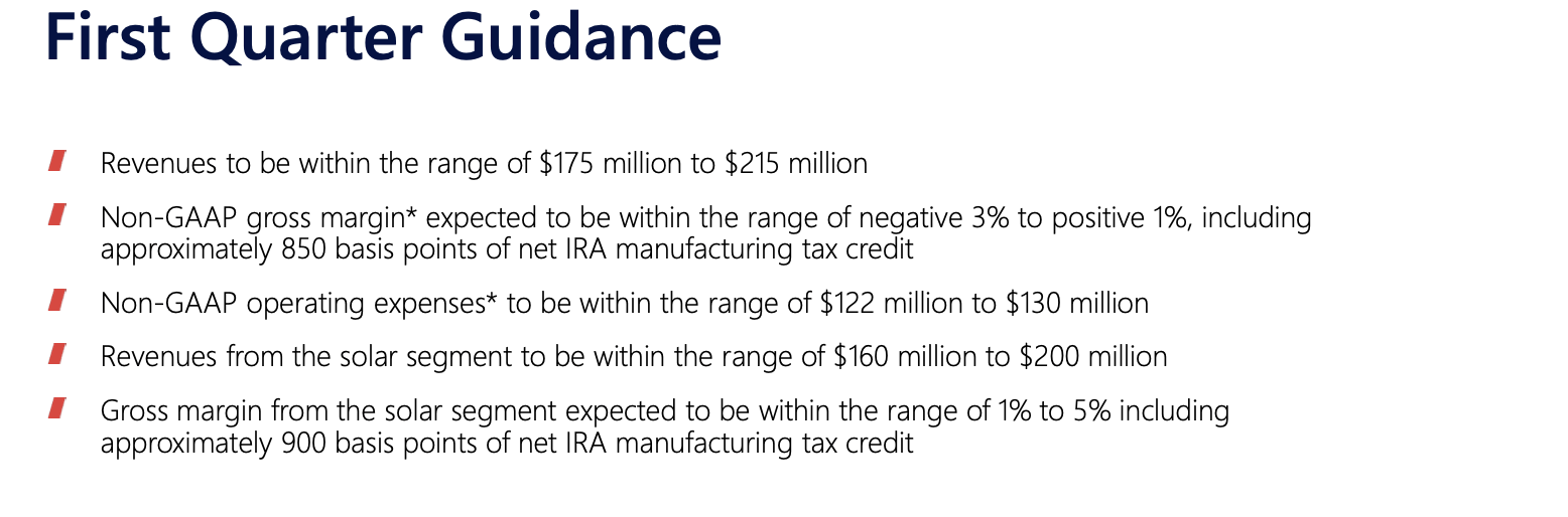 Looking ahead, management has guided for the first quarter to see another difficult showing, with revenues expected to plunge 77% YoY to $215 million at the high end. Non-GAAP gross margins are expected to compress further to between negative 3% and positive 1%. The company is expected to post around a $130 million non-GAAP operating loss.