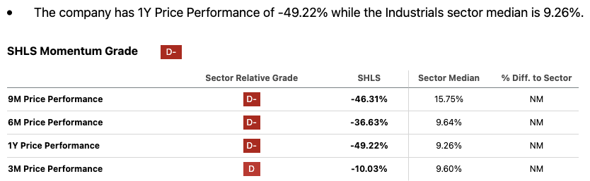 The greatest risk with an investment in Shoals at this time, which is a common theme among all solar energy companies, is its negative EPS revisions and decelerating momentum. This is outlined artfully by Seeking Alpha's quant system: