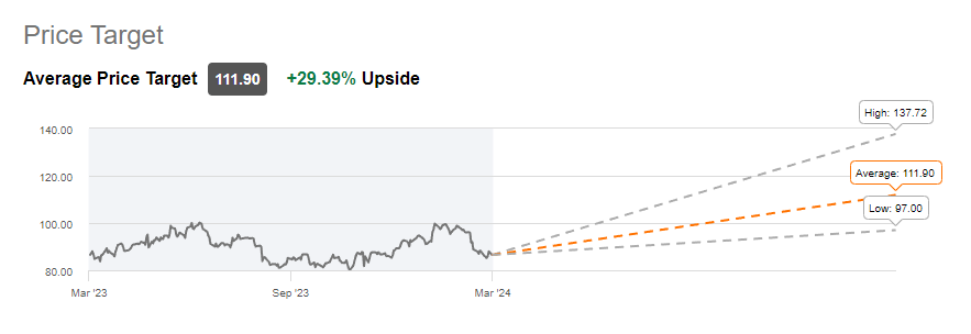 Taking a look at Wall Street targets, all represent reasonable returns if bought at current prices, with even the lowest at over 10% upside. Of seven analysts covering the stock, 4 rate it a strong buy, 2 a buy and 1 a hold.