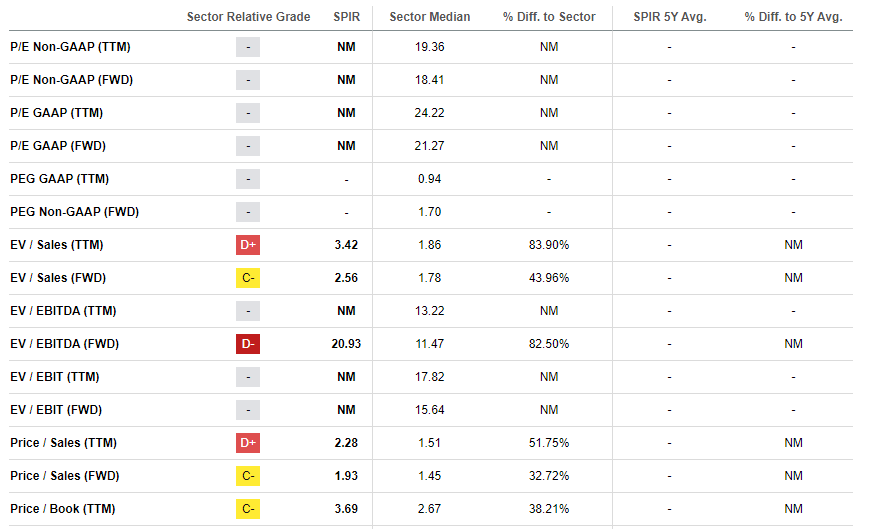 SPIR almost tripled in price over the last twelve months and doubled since inception of 2024. Most of the valuation ratios are unavailable since the company is not profitable yet. However, I must emphasize that Price/Sales ratio does not look very high given the company's rapid revenue growth. This might indicate undervaluation, but I also must simulate the discounted cash flow [DCF] model for more conviction.