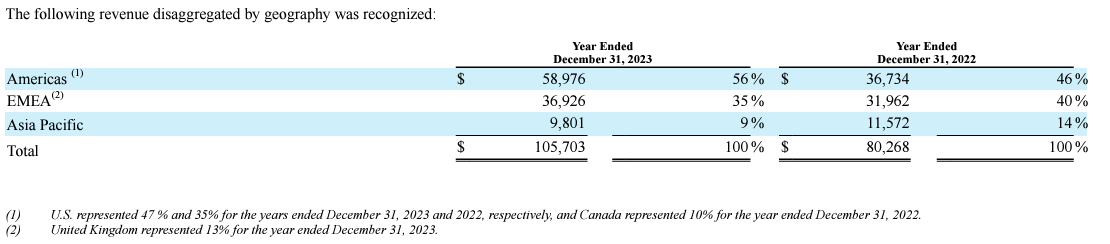 The company's fiscal year ends on December 31 and has only one reportable and operating segment. SPIR has plans to be present across diverse industries, but at the moment revenue is generated from four main solutions: Maritime [ship monitoring, safety, route optimization], Aviation [aircraft monitoring, safety, route optimization], Weather [forecasting], and Space Services [leveraging big data through its API infrastructure]. About half of the company's revenue is generated outside the U.S.