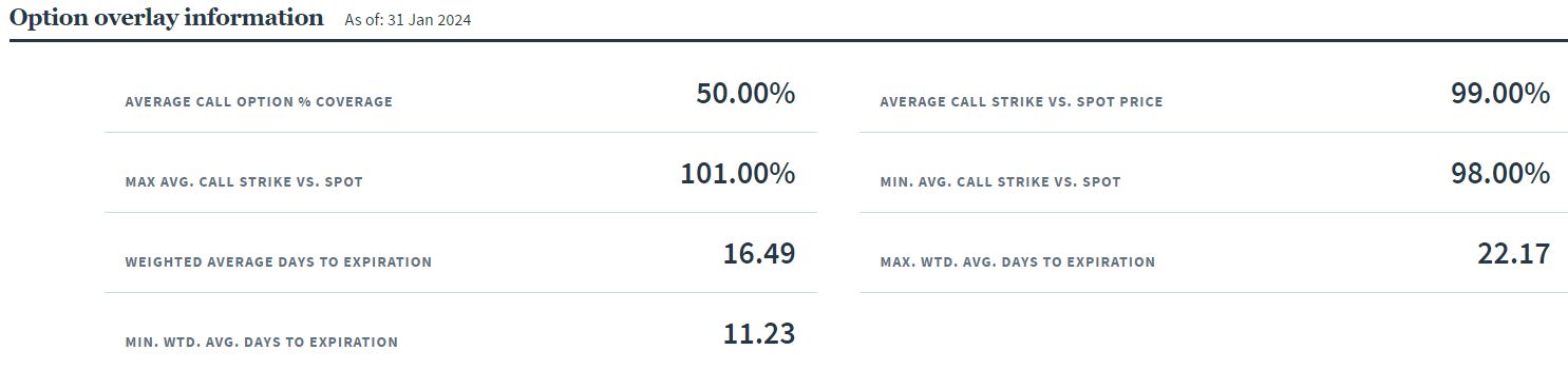 SPXX invests in all S&P 500 components and writes covered calls on 35% - 75% of its holdings, with a long-term target of 55%.