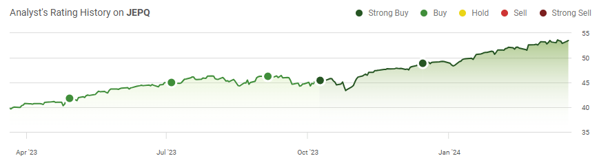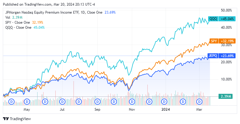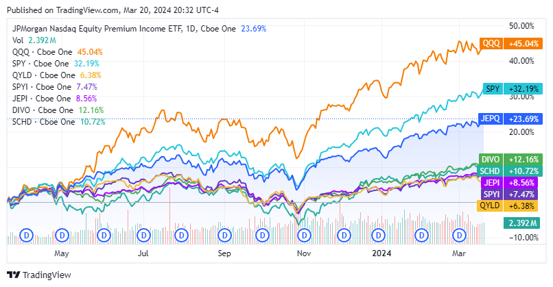 We're not even through Q1 of 2024, and what a year it's already been. The S&P 500 is up 8.81% YTD and reached an all-time intraday high of 5,242.92 before closing at an all-time high of 5,242.67. A few days ago, Citigroup (C) indicated that the S&P 500 could reach 5,700 in 2024 as technology, specifically AI and fintech, provides a runway for growth. The markets rallied to all-time highs as we are no longer fighting the Fed after commentary from Fed Chair Powell on Wednesday afternoon. While there is a lot of excitement and investors are looking forward to further capital appreciation in 2024, a whole segment of income investors is thinking about deploying capital in a lower-rate environment. The T-bill and chill methodology will disappear as rates start to decline, but the need to generate income will still exist for a segment of the investing population. I have continued adding to my position in the JPMorgan Nasdaq Equity Premium Income ETF (NASDAQ:JEPQ) going into the Fed meeting and feel it's a strong candidate to generate a combination of capital appreciation and income if the market continues higher and rates decline.