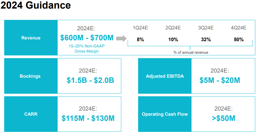 While the past is very discouraging, Stem has an optimistic outlook. To begin with a small recap, even though its profitability is not attractive, characterized by negative trailing EBITDA, it is promising to note the significant forward strides the company is making in its profitability journey. It inspires some hope to note that the company achieved an EBITDA breakeven in the second half of 2023, an indication of its improving operational and financial discipline. The most attractive thing is that the company’s guidance for FY2024 estimates are an EBITDA of $5-20 million, a testament to its commitment to profitability and operational efficiency. In general, the 2024 outlook is very optimistic, as shown below.