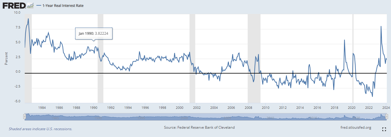 Real yield falls when the gap between interest rates and inflation rates falls. We are in a situation where markets are likely expecting rates to fall with inflation coming down to policy levels. Interest rates are not close to former levels, while inflation in percentage terms is not that far away from policy limits, although it has been quite sticky, which is an important issue.