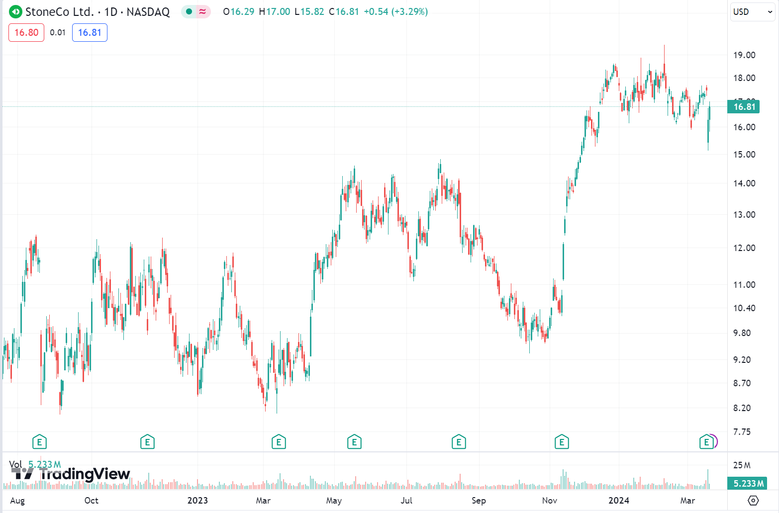 StoneCo (NASDAQ:STNE) just reported its Q4 earnings. In after-hours trading, the stock dropped as much as -15%. Since, the dip has been almost completely been bought, so that the stock is down just around 3%.