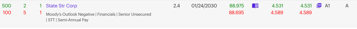 Another alternative is the STT bonds which yield around 4.5%. For example, the Jan 2030 unsecured bond yields 4.55%.