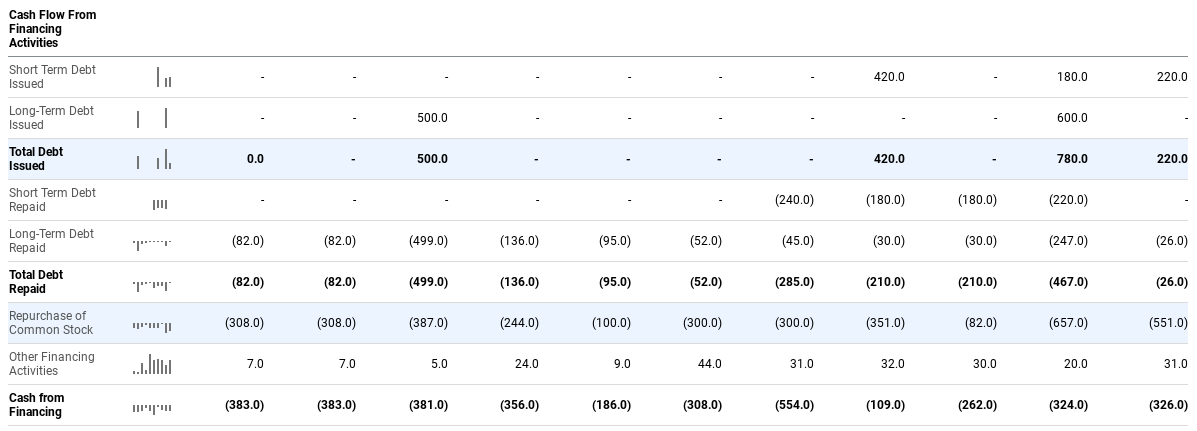 However, Teradata has not issued debt frequently over the past decade, although when it has, it has done so at a high volume. Additionally, it has not issued any common stock and has positively repurchased common stock every year since 2014, bolstering shareholder value over the long term. I would argue that it may be wiser at this stage for the firm to begin to repay its debt rigorously, and to hold off on repurchases of common stock at this time to aid in doing so.