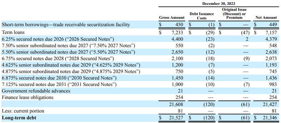 At the end of the quarter, TransDigm had $4.2 billion of cash on its balance sheet with long-term debt of $21.1 billion. With a Net Debt to EBITDA ratio of 5.0x, TransDigm has a pretty heavy debt load, but this ratio isn't unusual compared to what it's historically carried on its books. The vast majority of its debt is secured at fixed interest rates with long-dated maturities, so there isn't an immediate refinancing risk. The weighted average interest rate is 6.3%.