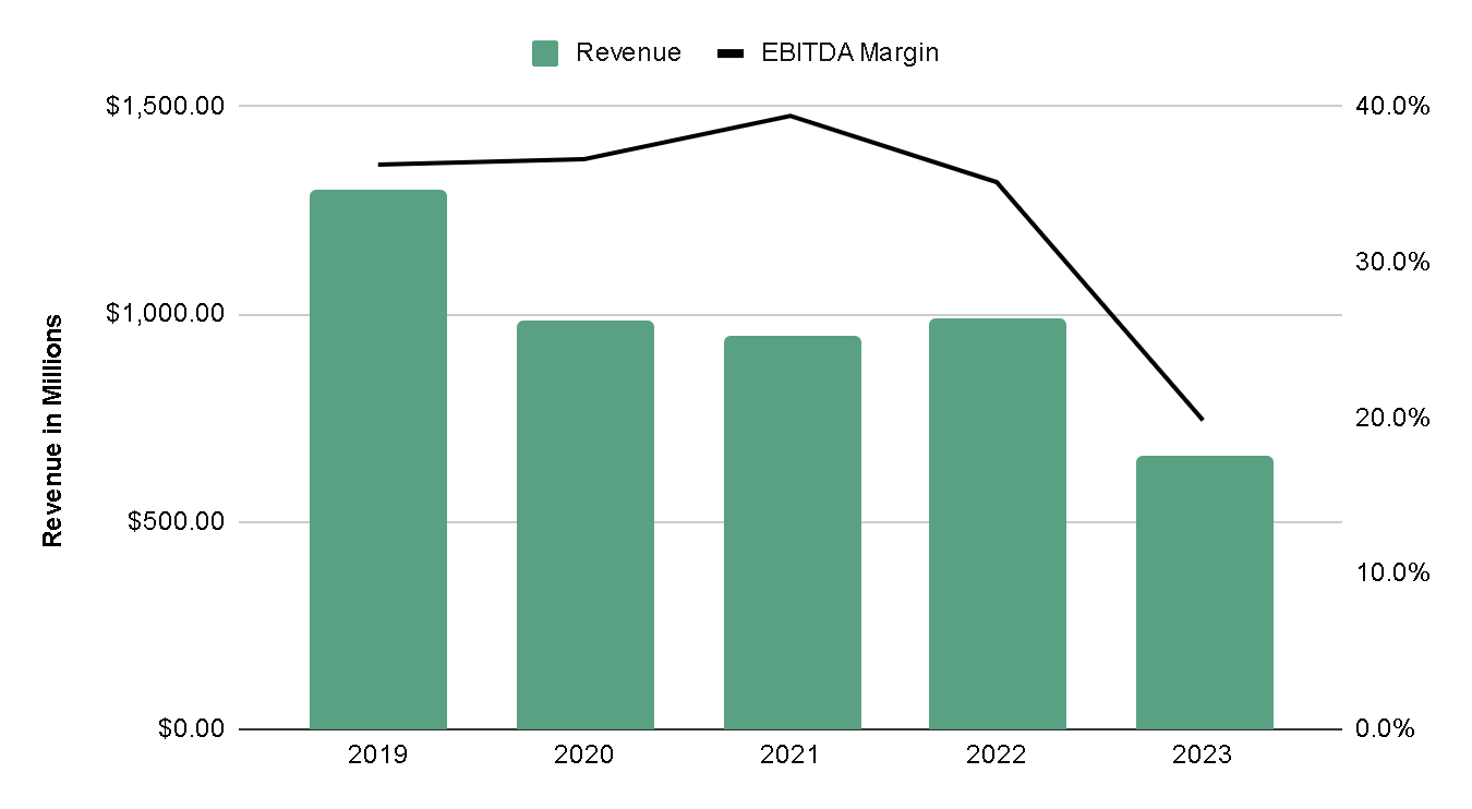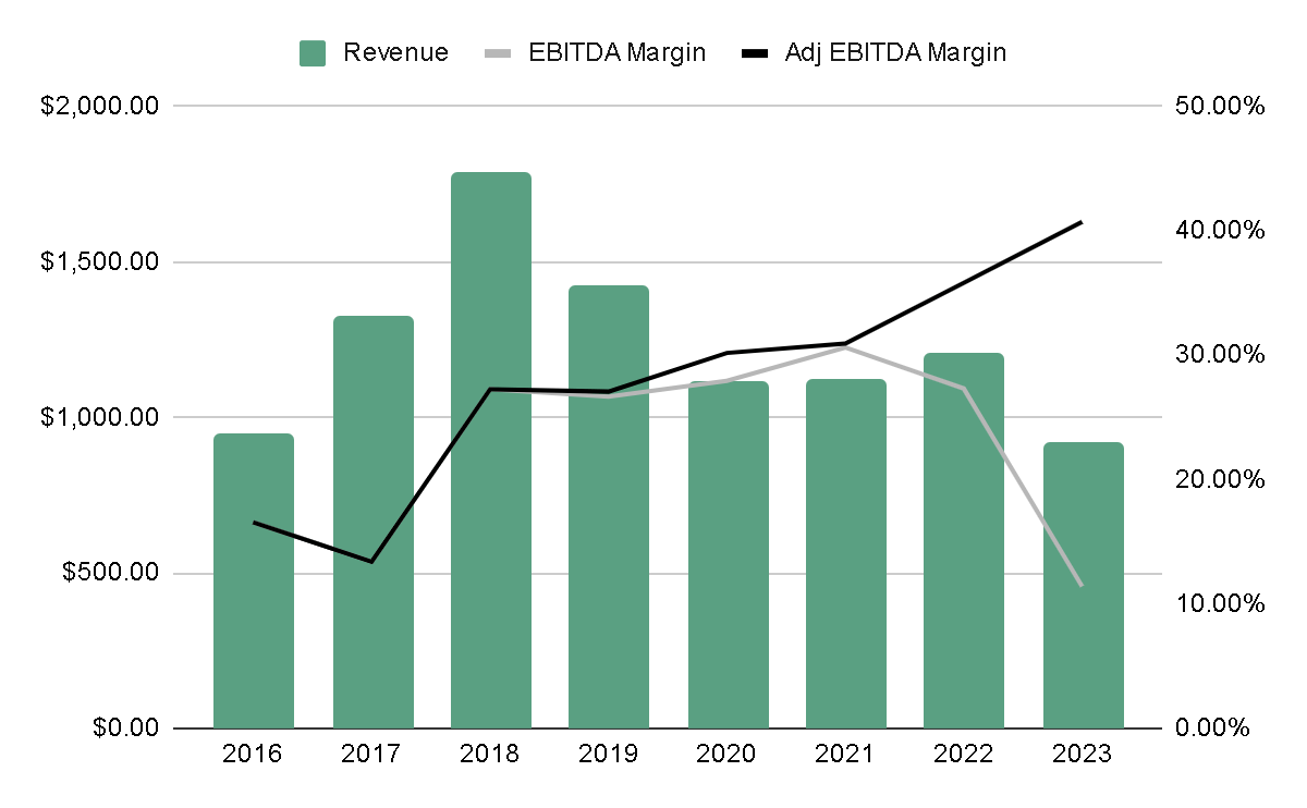 The core business is Marketing Services, in which the company offers printing of the famous Yellow Pages, which are telephone directories of businesses in which small local businesses pay to be advertised and consumers use the Yellow Pages to discover nearby businesses. This business is in decline due to the digitalization of advertising, however, it still generates a fairly chunky EBITDA, with margins that used to average 35% and although the year 2023 was somewhat bad, management's expectation is to generate margins again around 25% again.