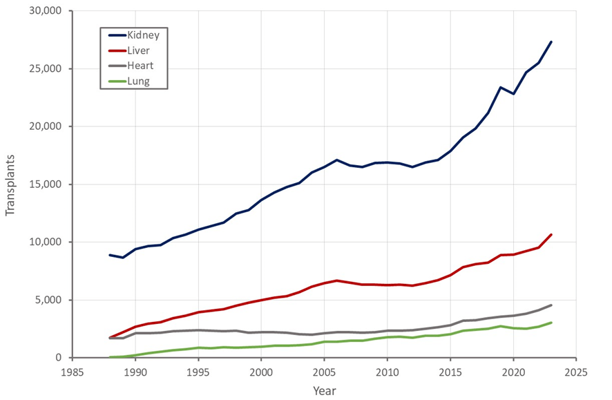 Figure 2: Organ Transplants in the US (source: Created by author using data from The Department of Health and Human Services)