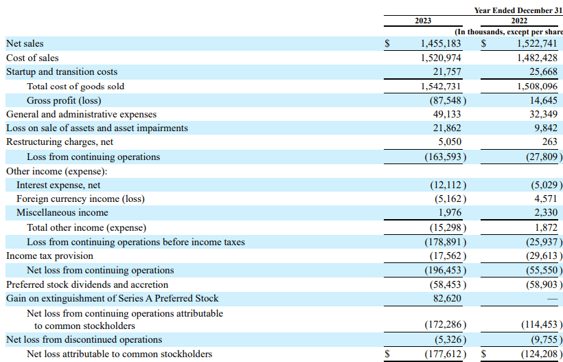 TPIC recently posted Q4 FY23 and FY23 results. The net sales for FY23 were $1.4 billion, a decline of 4.4% compared to FY22. The main reason behind the decline was underperformance in its automotive and field services segments. The automotive segment sales declined 48.2% in FY23 compared to FY22. The major reason behind the decline was Proterra's bankruptcy, which resulted in fewer composite bus bodies manufactured. The field services segment sales declined 30.6% in FY23 compared to FY22. The reason behind the decline was the increased focus on non-revenue generating repair and inspection activities. Its adjusted EBITDA for FY23 was $85.9 million, which was $37.9 million in FY22. The major reasons that contributed to the decline were the warranty campaign and higher repair costs. Its net loss for FY23 was $172.3 million, which was $114.5 million in FY22.