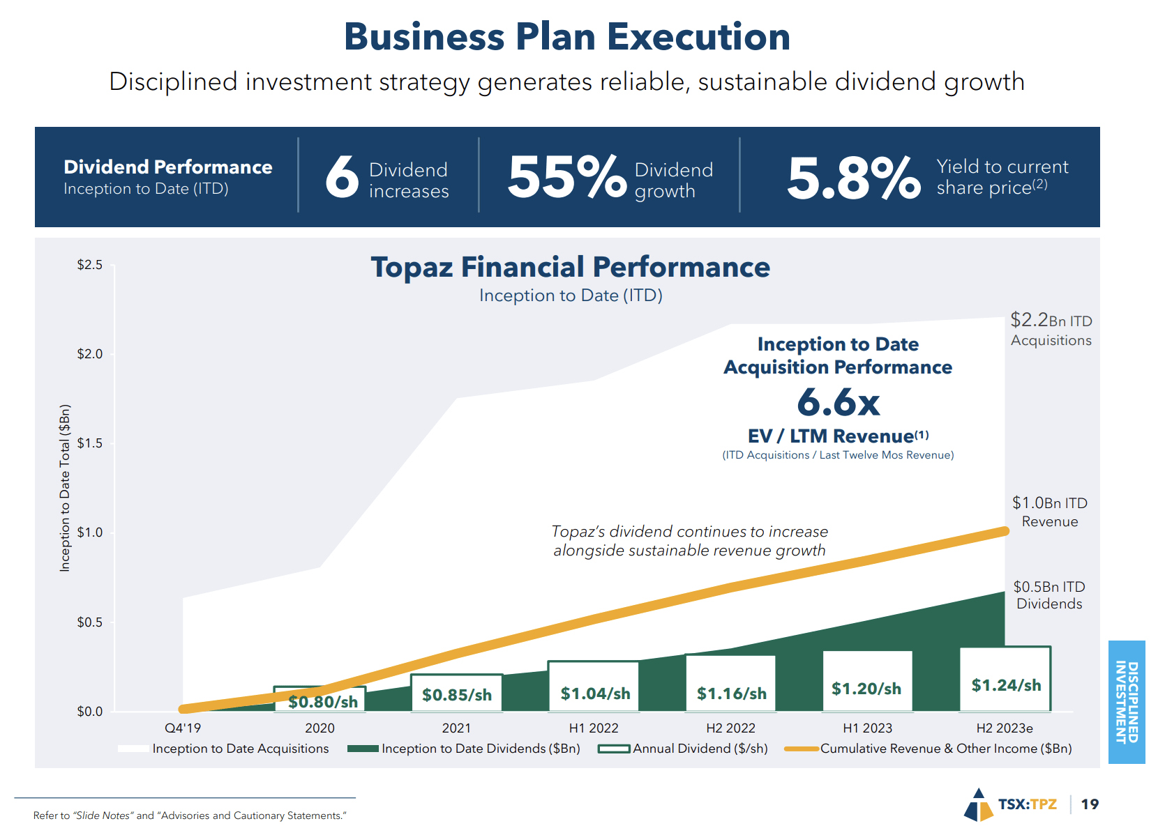 Speaking of its dividend, Topaz currently pays C$1.24 per share after six consecutive dividend increases with a 55% payout hike. It currently yields 6.1%. It has a 2024E payout ratio of just 56%!!