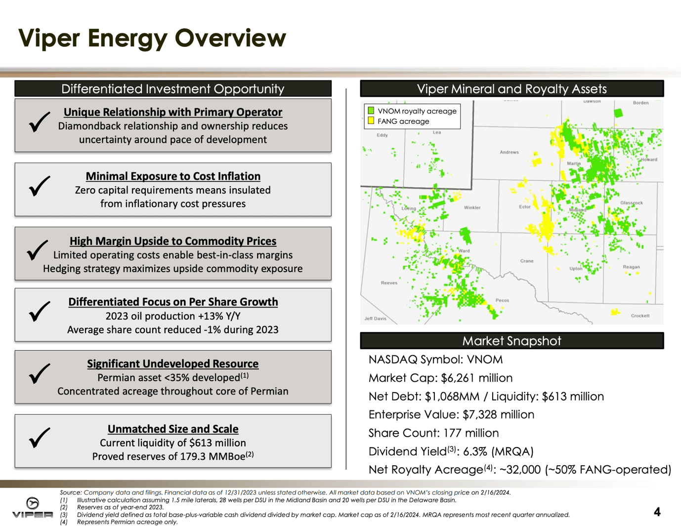 VNOM is a Delaware corporation specializing in the ownership and acquisition of mineral and royalty interests in oil and natural gas properties, primarily within the Permian Basin.
