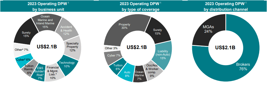 Business lines include Accident and Health, Inland Marine, and Surety. A number of smaller lines of business make up the USD $2.1bn of premiums.