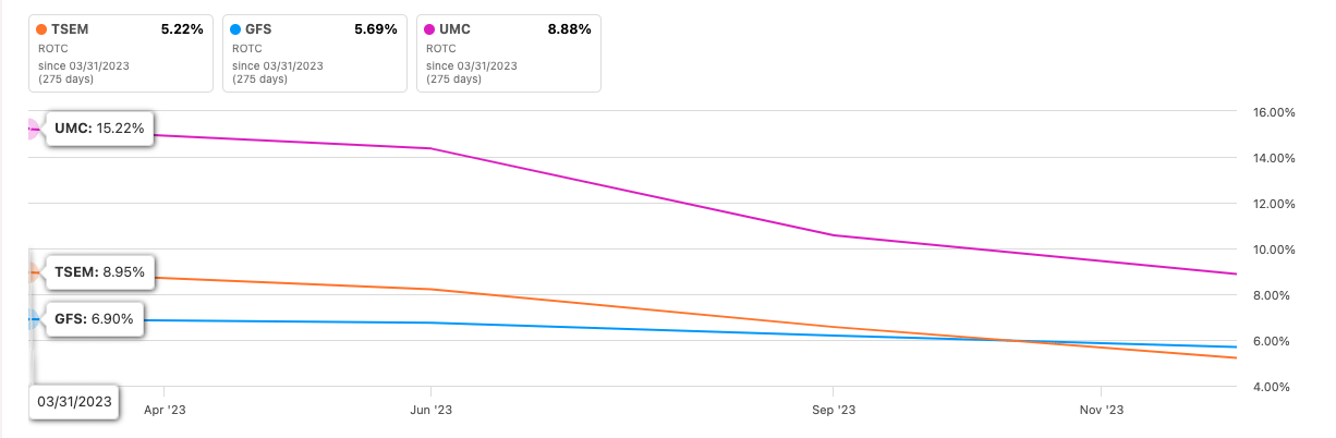 In terms of competitive edge, the company’s ROTC against some of the peers mentioned in their 20-F filing, we can see that over the last year, the company struggled to maintain its efficiency. ROTC has been on a downtrend. The positive here is that the two competitors in the image also saw their competitive edge come considerably down, and it makes sense. The semiconductor industry had a tough time for a while. The negative sentiment persisted and only looks to improve going forward, but we are still not too sure.
