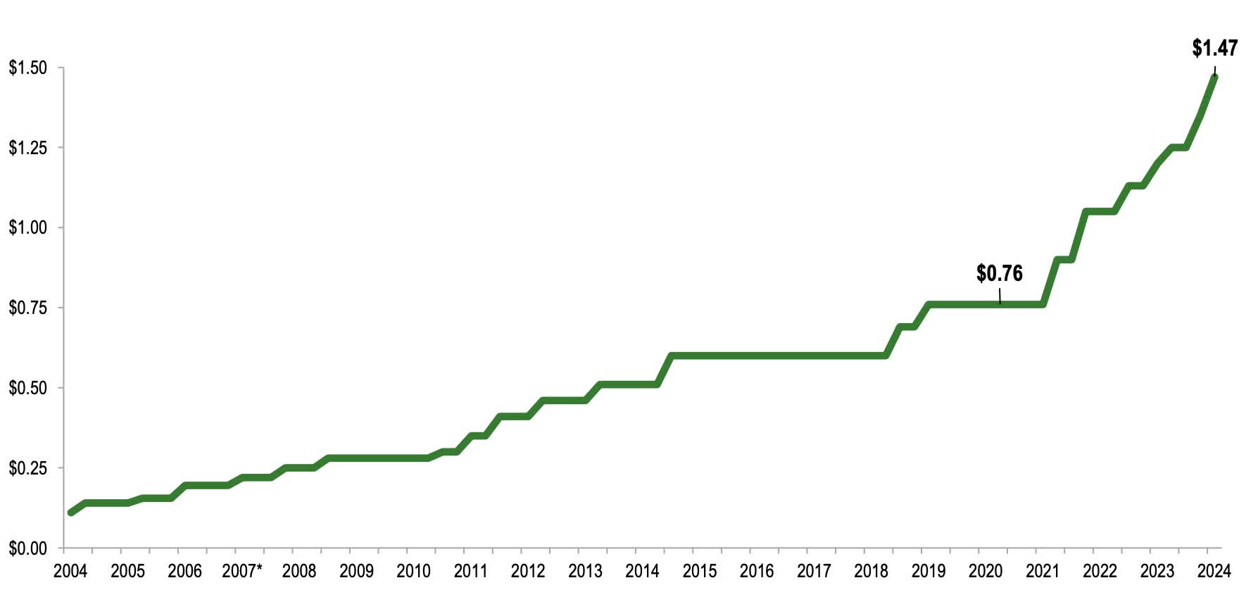 This ensures DE can continue its long history of paying dividends with more than 30 years without a reduction. Since COVID when the company paused the dividend, they have grown it by more than 93% from $0.76 to current.