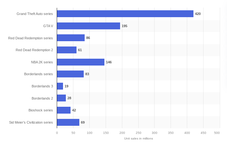 Take-Two Interactive All-Time Game Title Unit Sales Worldwide 2024 (Statista)