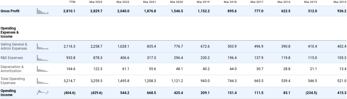 TTWO's operating loss at the moment is largely a result of higher SG&A expenses and R&D expenses: