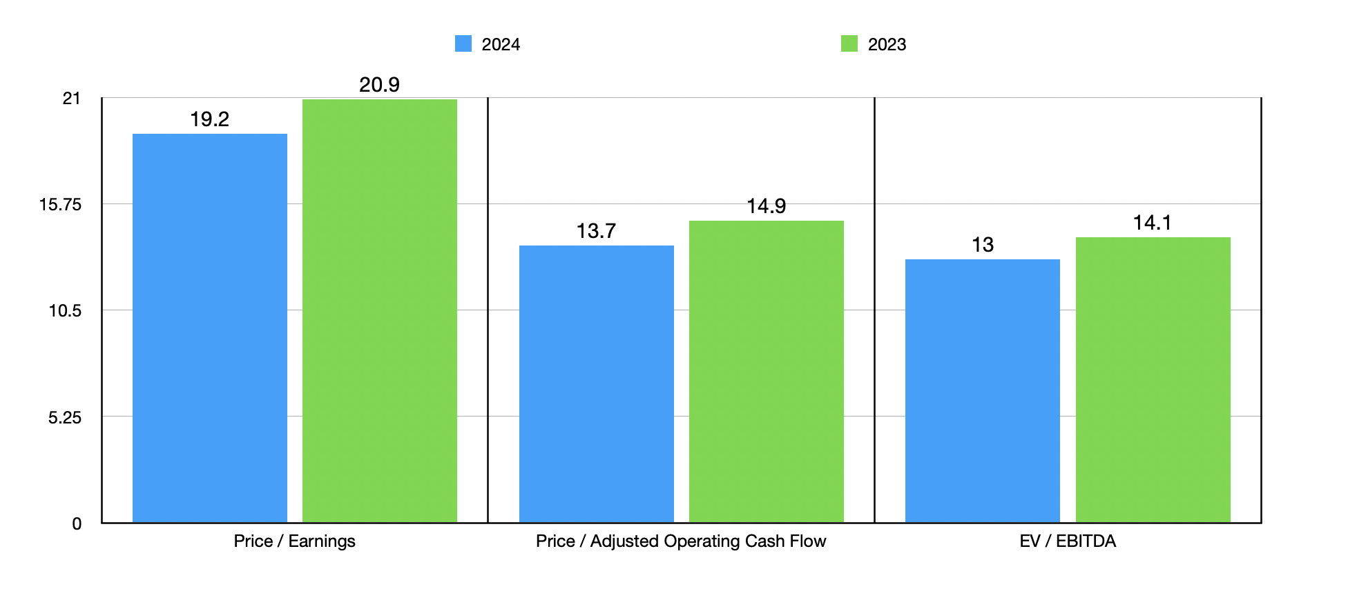 When it comes to the 2024 fiscal year in its entirety, management seems optimistic. They anticipate revenue of around $11.5 billion, with same restaurant sales growth of between 2.5% and 3%. A lot of the growth will also come from between 50 and 55 new openings, with much of the company's $600 million capital expenditure budget going to those new locations. Earnings per share from continuing operations, meanwhile, should be between $8.75 and $8.90. At the midpoint, that should translate to net profits of around $1.07 billion. Assuming other profitability metrics rise at the same rate, that would give us adjusted operating cash flow of nearly $1.50 billion and EBITDA of approximately $1.70 billion.