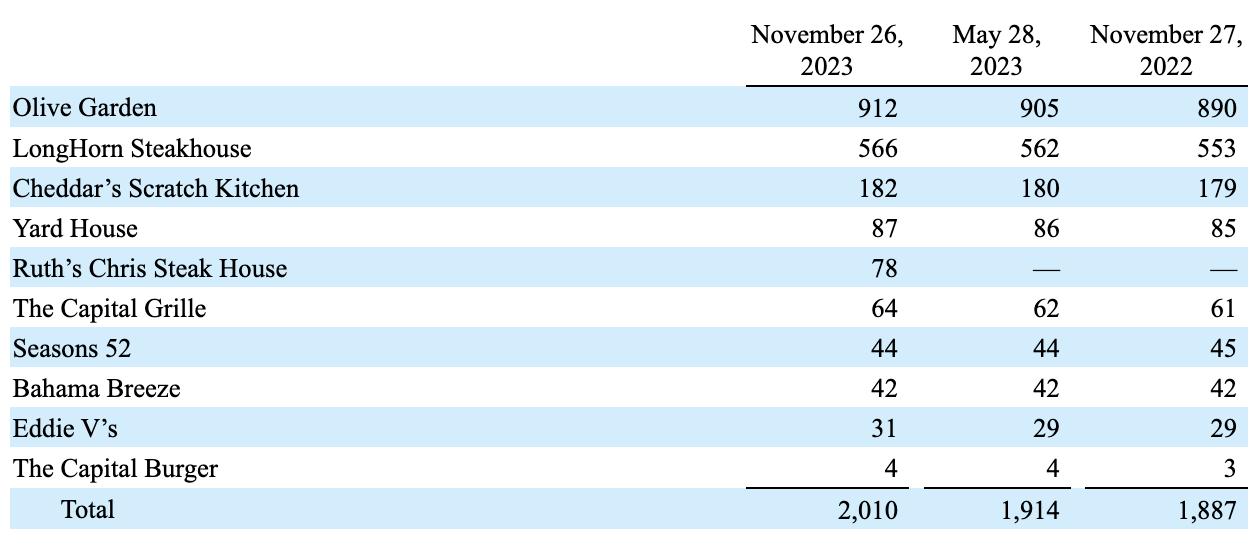 For the 2024 fiscal year, growth for the business continues. Thanks to an increase in store count from 1,887 to 2,010, the company has seen revenue grow from $4.93 billion in the first half of 2023 to $5.46 billion in the first half of the current fiscal year. Naturally, same restaurant sales growth also contributed to the upside the company experienced. While its fine dining operations reported a year-over-year decline of 2.3%, Olive Garden grew by 5.1%. LongHorn Steakhouse saw an even more impressive 6.5% rise. All of the other operations combined reported a modest uptick of 0.3%.