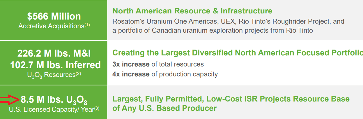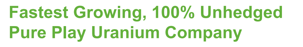 In a few words, everything is explained. Unhedged pure-play uranium company. It's not that UEC is the only unhedged player, but it is a company, that is seriously committed to growing at scale.