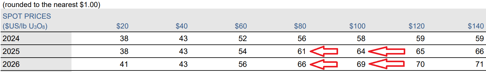 What you see above is that when uranium prices climb higher than $80 per lb, CCJ doesn't reap the benefits as its production is hedged. This consideration is in place and will repeat itself in 2024 and beyond. Even as uranium prices stay higher than $100 per lb, CCJ is not going to benefit from this element.
