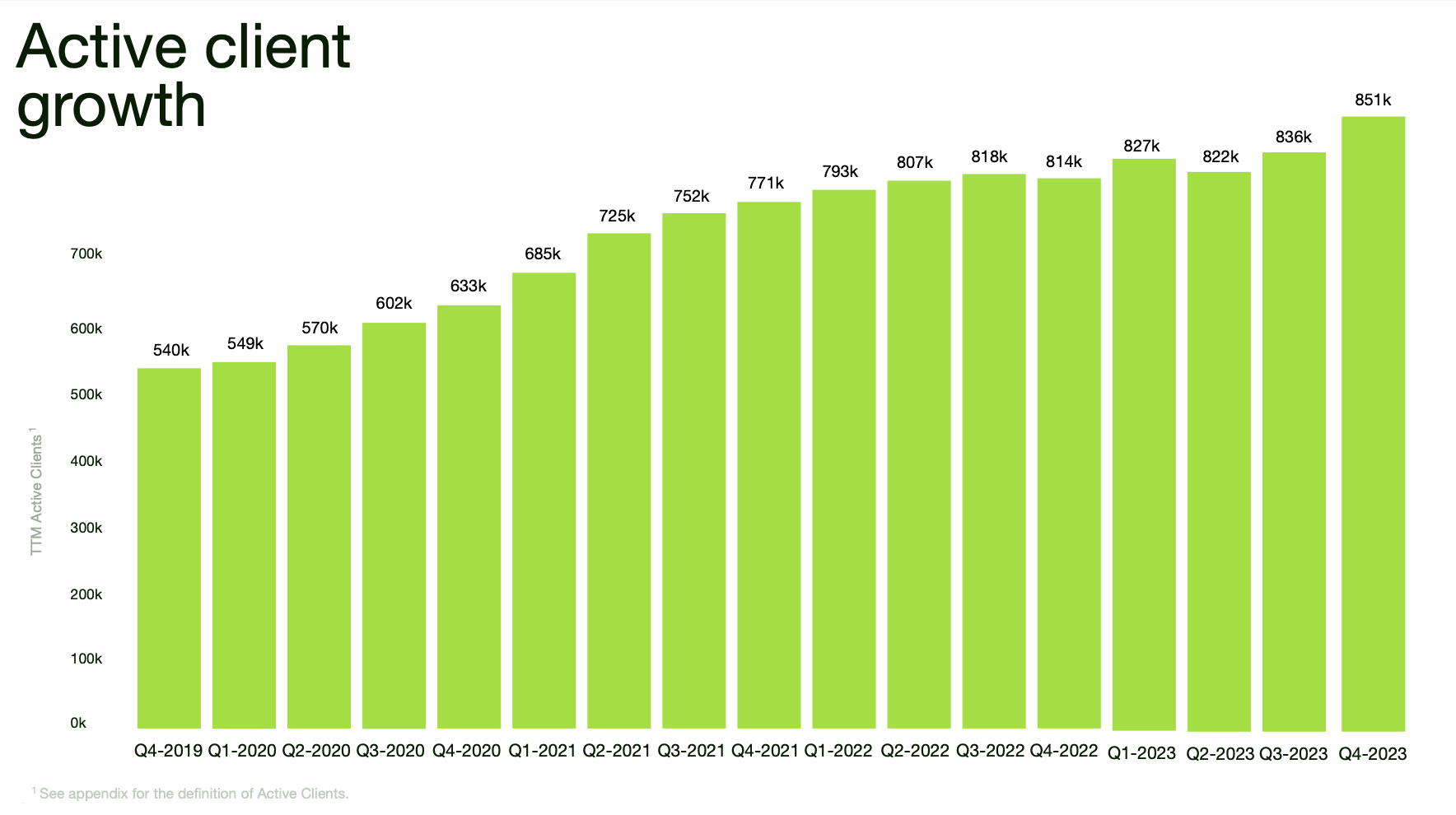 Within the dynamic market environment in 2023, we turned our business into one of steady growth. For the full year 2024, we expect to continue this progress, producing strong year-over-year growth in active clients, revenue, adjusted EBITDA, and adjusted free cash flow. Our momentum exiting 2023 and our plan for 2024 give us the conviction that we can provide strong business results and serve our customers even in uncertain economic conditions. This confidence is based on our growing business efficiency, our culture of innovation, and the pipeline of new products that we have planned for 2024 and beyond."