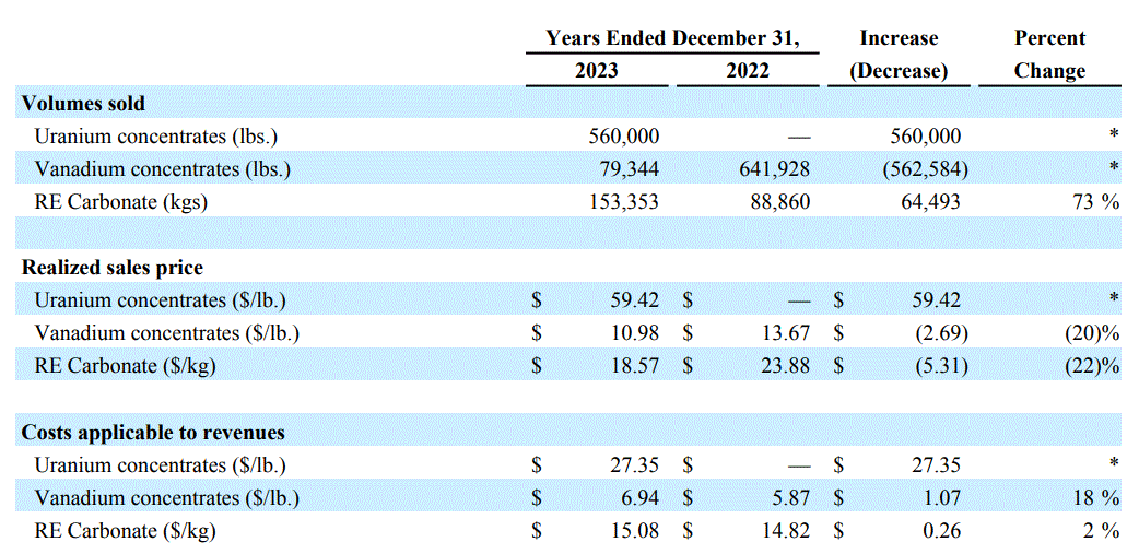 While it did start selling uranium concentrate, it also reduced its vanadium sales significantly.
