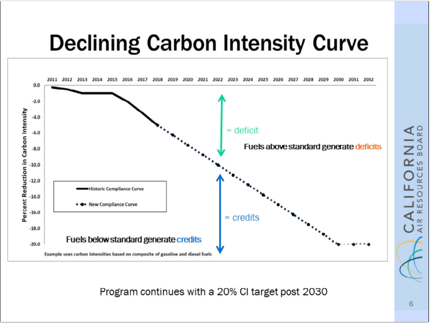 The importance of this geographical advantage will become more vital overtime due to the structure of most government subsidies for renewable fuel production. Remember, the ultimate goal is to reduce GHG emissions over the lifecycle (production and distribution) of the fuel. Take the carbon intensity curve by the California Air Resources Board (CARB) for example.