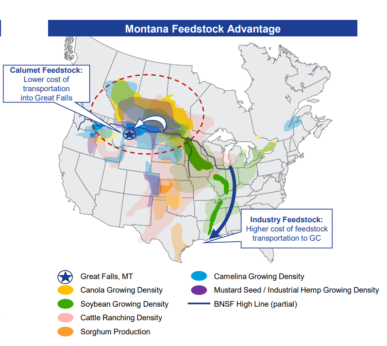 In 2020, Calumet started planning to convert their Great Falls refinery in Montana to a dual specialty asphalt and renewable fuels refinery named Montana Renewables (MRL). They planned for the initial conversion to possess 15,000BPD capacity of specialty asphalt and 15,000BPD of RD. Through advantageous loans from the Department of Energy and Montana municipal bond market, they hope to expand their facility’s capability from 15,000BPD of RD to 18,000BPD of SAF.