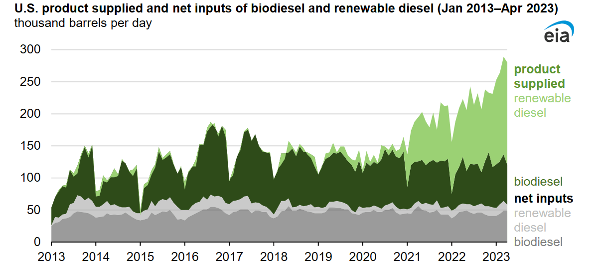 Because of RD’s superior product profile, its growth has outperformed bio-diesel since 2021.