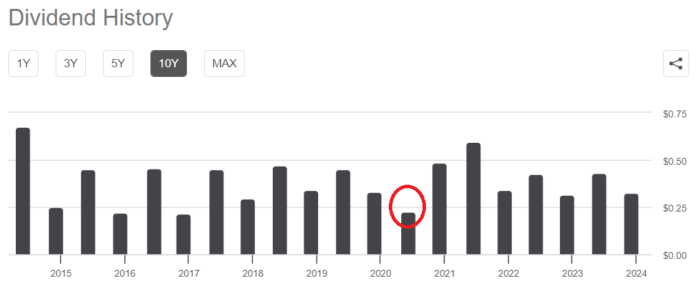 However, given the risk of its juicy dividend yield of 6.46% being cut as pictured below, this thesis focuses on capital spending reduction and cash flow generation efforts to chart an investment case.
