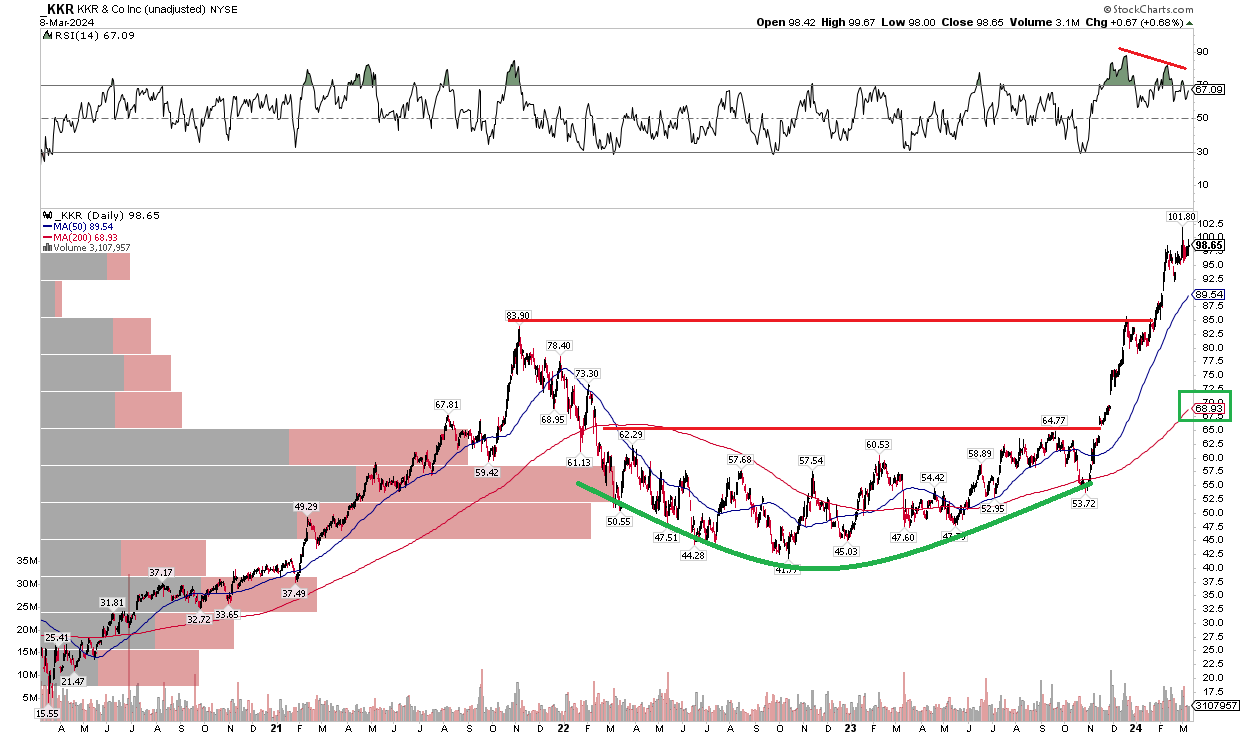 Overall, KKR’s chart is powerful from the bulls’ perspective despite two near-term signs of caution.