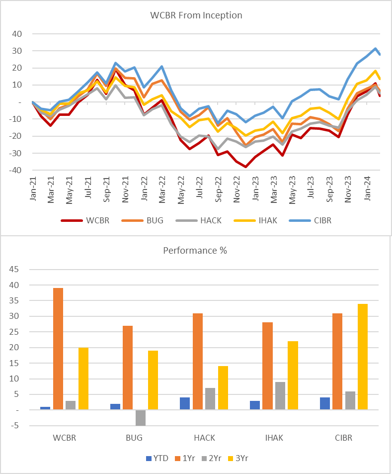 WCBR is a relatively new ETF with a three-year track record and around US$100m AUM, which pales against the sector leader First Trust NASDAQ Cybersecurity ETF (CIBR), which I recently rated a Hold. However, I identified it as one of two pure-play cyber security ETFs, the others hold about 50% in other sectors such as semiconductors and network equipment. In addition, the most distinct feature of the ETF is its stock selection methodology.
