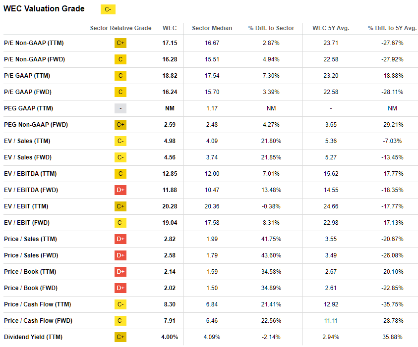 Table 1: WEC Energy Group (WEC): Valuation metrics (Seeking Alpha)