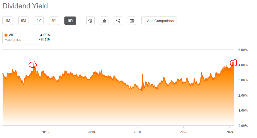 Figure 11: WEC Energy Group (WEC): Starting dividend yield (Seeking Alpha)