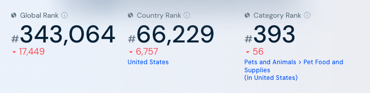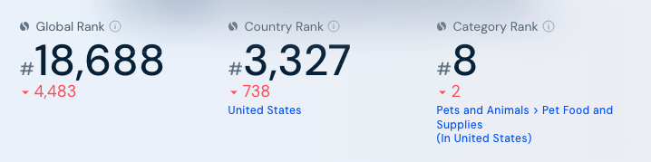 Let’s compare publicly available Similarweb data to see if Freshpet is successfully creating a brand that can justify premium prices. Here are Freshpet Healthy Dog Food and Cat Food, Fresh from the Fridge’s rankings.