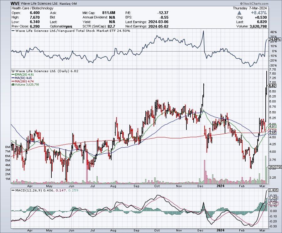 Although I am not fond of their prospects, Wave does not appear expensive relative to peers, and market sentiment is positive. So, it's difficult to take a negative stance on Wave. Given these considerations, the safe play on Wave right now is a "hold," with an emphasis on monitoring the company's progress on clinical developments and strategic initiatives for potential future reassessment. I'm looking for some differentiation here and I'm just not seeing it yet.