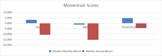 Momentum in utilities (Chart: author; data: Portfolio123)