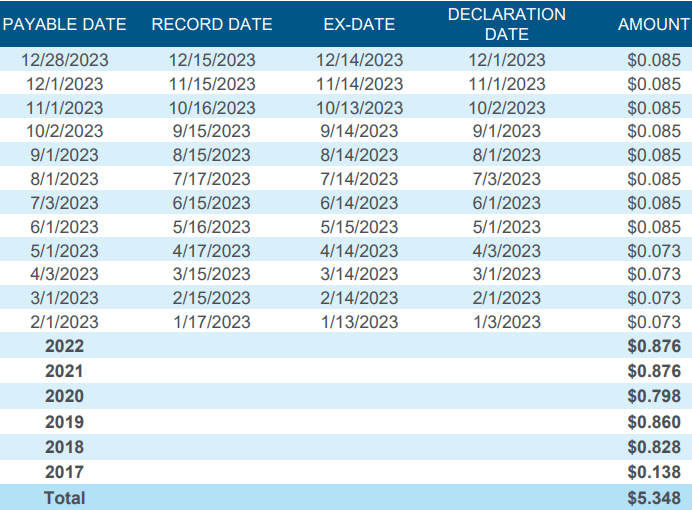 We cover other funds that have mostly CLO equity positions, which pay a higher yield but are also taking on higher risk. XFLT takes a diversified approach, which results in a lower overall yield for investors but reduces overall risk. The benefits of being a bit more conservative were demonstrated during COVID. Like many other CEFs in the sector, XFLT did have to reduce its distribution, but in 2021, it paid out a higher distribution than it was paying pre-COVID. The income disruption was brief, and today, XFLT is paying out more than it ever has, with $0.972 paid in 2023.