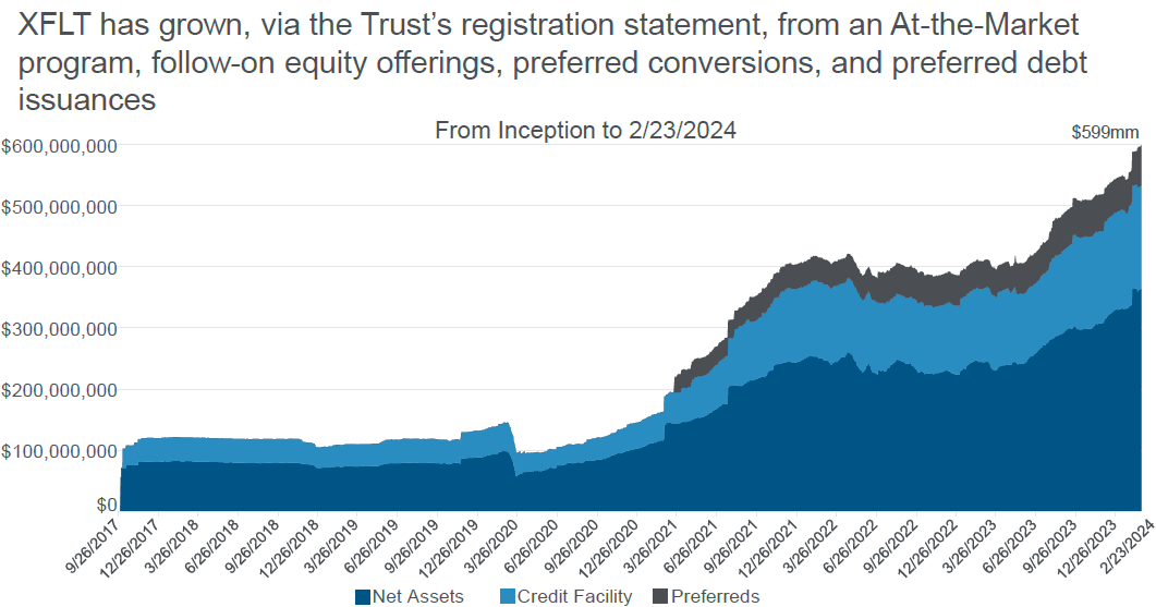 XFLT crossed over $500 million in assets in Q4, and today is very close to $600 million. Growth provides better returns thanks to economies of scale, and is also taking advantage of what management sees as favorable pricing among leveraged loans.