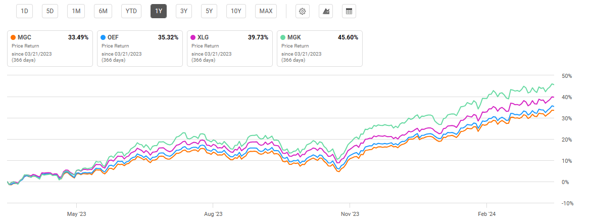 One-Year Performance: MGC and Compared Mega-Cap ETFs (Seeking Alpha)