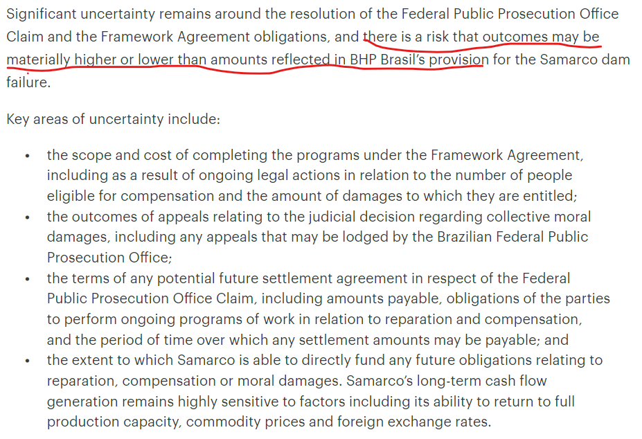 Right now, we are almost 10 years from the original event and the matter is still not resolved. While BHP cited new progress in the judicial process as the "trigger" to increase the accounting provision, the final outcome is still uncertain and could go either way: