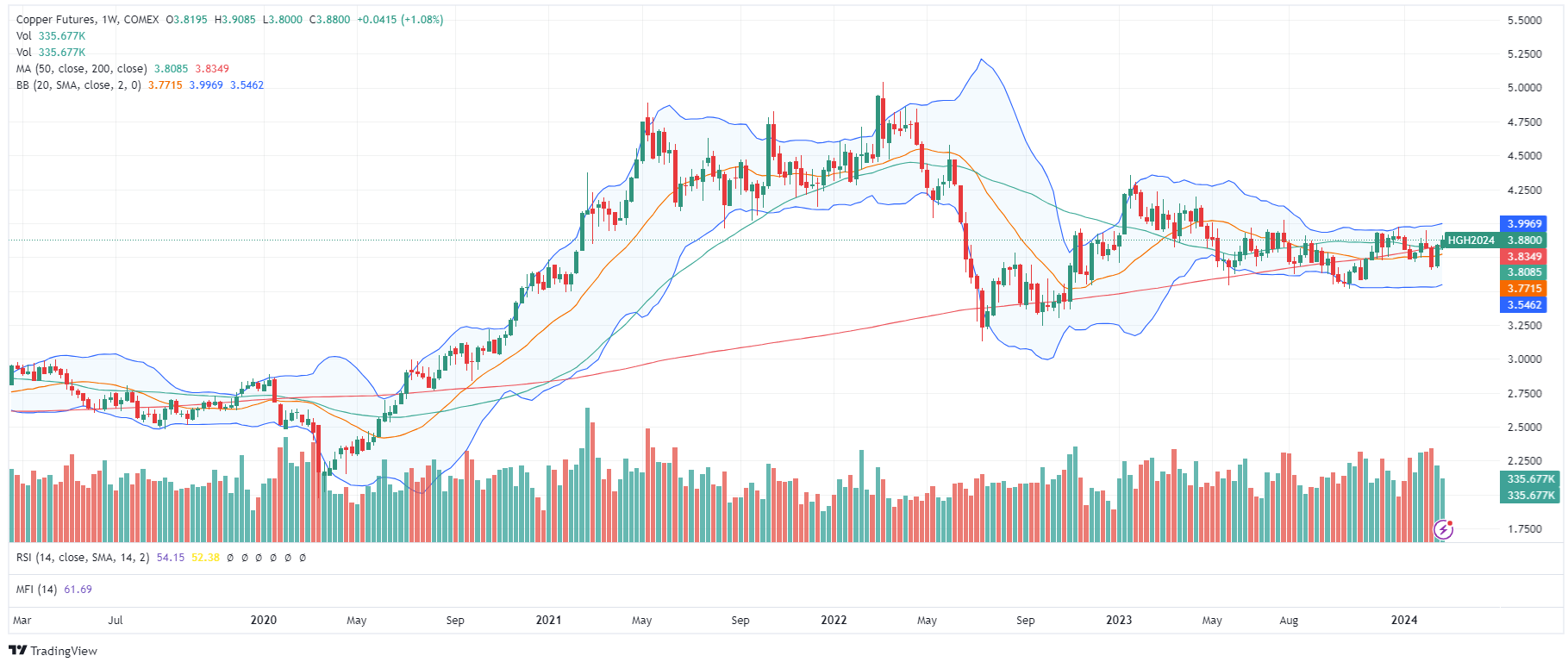 Copper seems to be consolidating after coming off the 2022 highs: