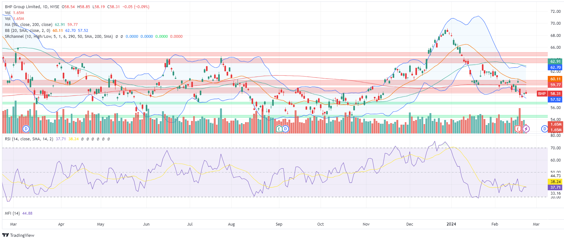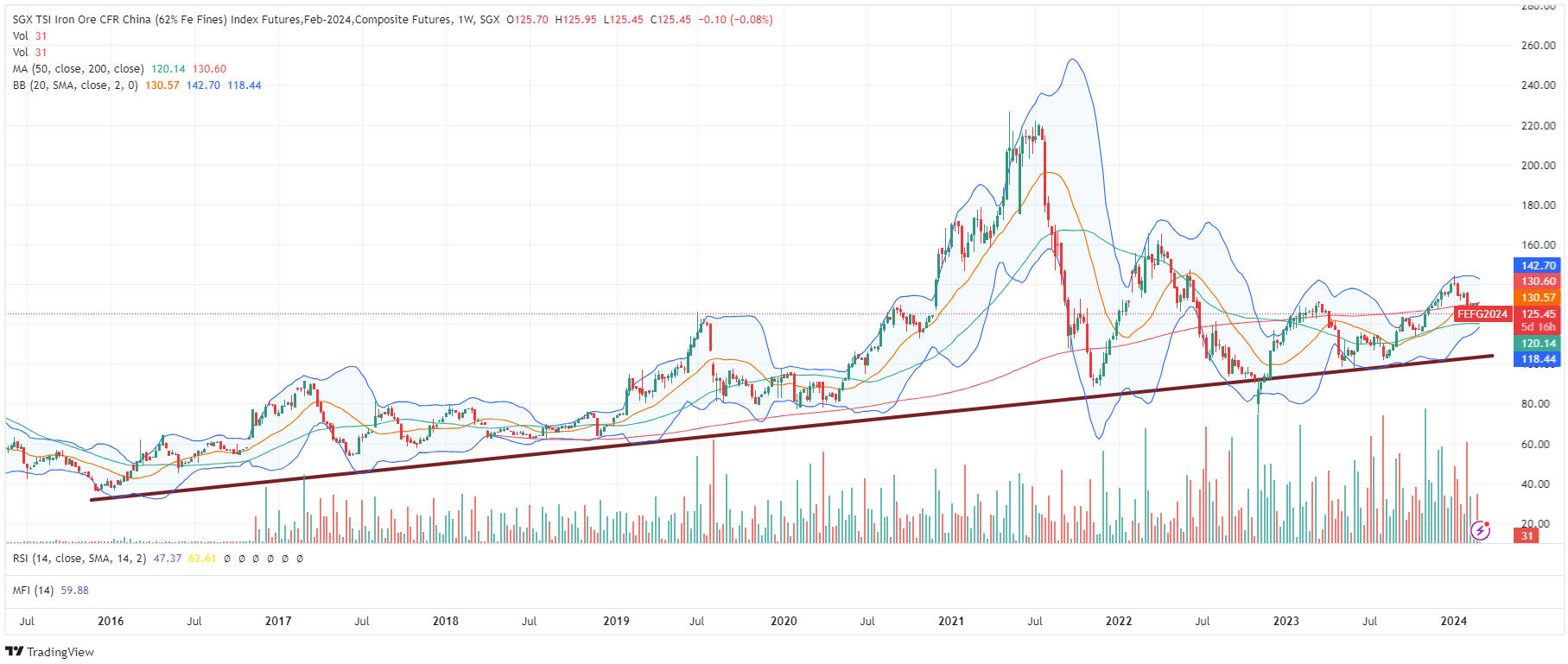 The recent selloff on the earnings, perhaps augmented by the broader pressure on mining stocks since the start of 2024, has pushed BHP back close to what I find an important support area. We have also seen from last quarter's 13-Fs that some institutional "smart money" has started adding mining stocks. As one of the behemoths in the space BHP will benefit too from these capital flows.