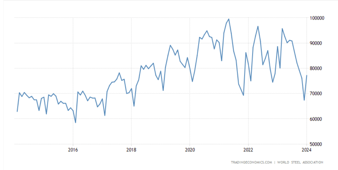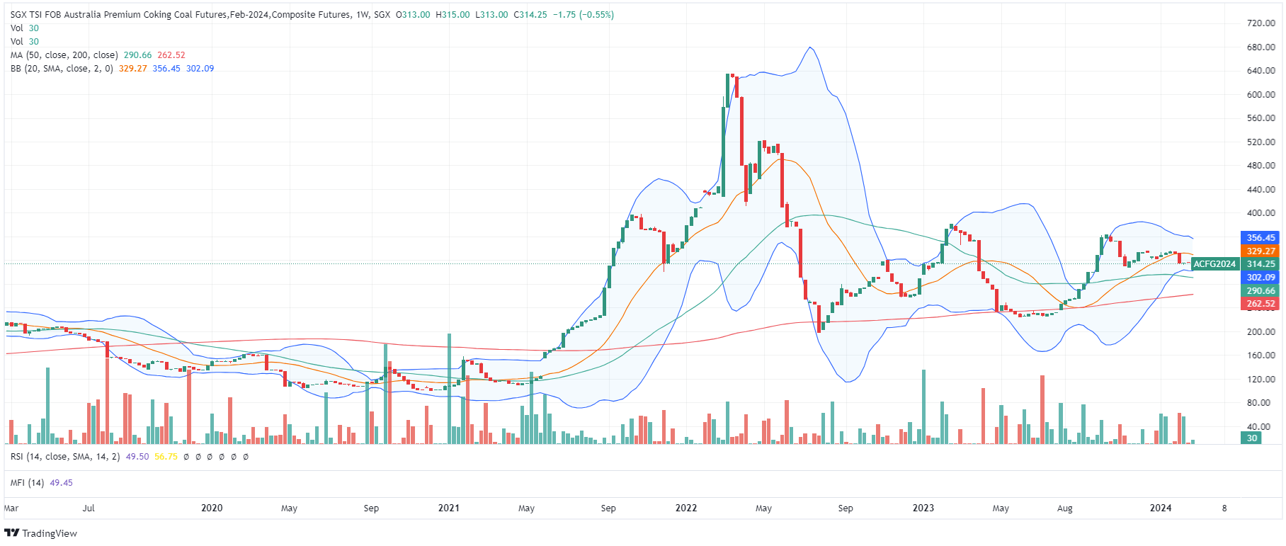 Metallurgical coal also doesn't seem to want to come back to its pre-pandemic levels: